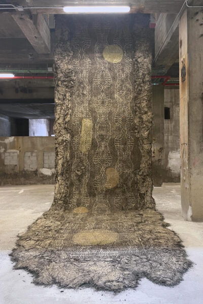 De Grote Kerk Veere toont deze zomer een bijzonder kunstwerk waarin wortels tot textiel zijn gegroeid: YIELD, gemaakt door Diana Scherer.